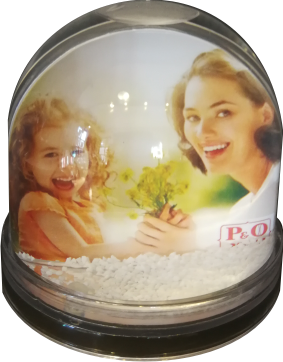 Egyedi ajándék a hógömb saját fotóval és szöveggel.