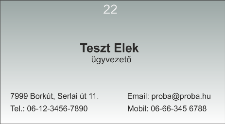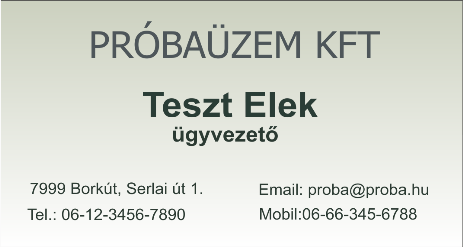 A mellékelt minta névjegykártyát igény szerint INGYEN testre szabjuk.